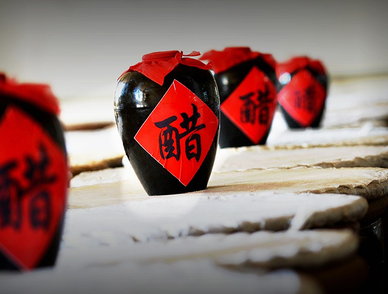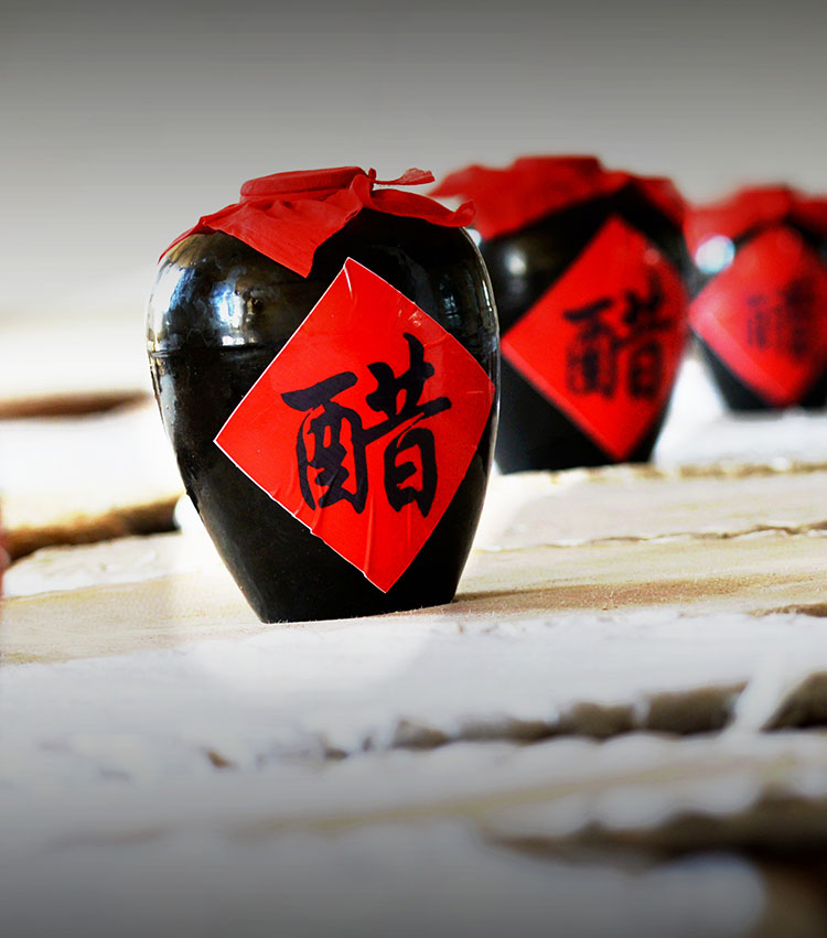 荫城铁府陈醋以优质高粱、玉米、小麦、小米为原料,以优质谷糠、大麦、豌豆、麸皮为辅料,经微生物制曲、糖化、酒精发酵、21天醋酸固态发酵等多道传统工艺流程精心酿制而成。